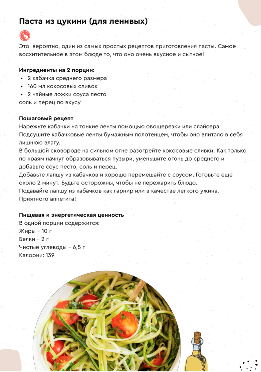 Привет! Я Тата, и это мой гайд, в котором я хочу поделиться полезными, легкими, летними рецептами, которые обожаю готовить для себя. Знаю, что всем всегда интересна тема питания, рецептов и формирование своего рациона. А еще знаю, что многим интересно то, сколько и что я кушаю, какие порции и как считаю калории. С помощью этого гайда вы можете об этом узнать! Изучайте, пробуйте и создавайте свой рацион питания на каждый день!