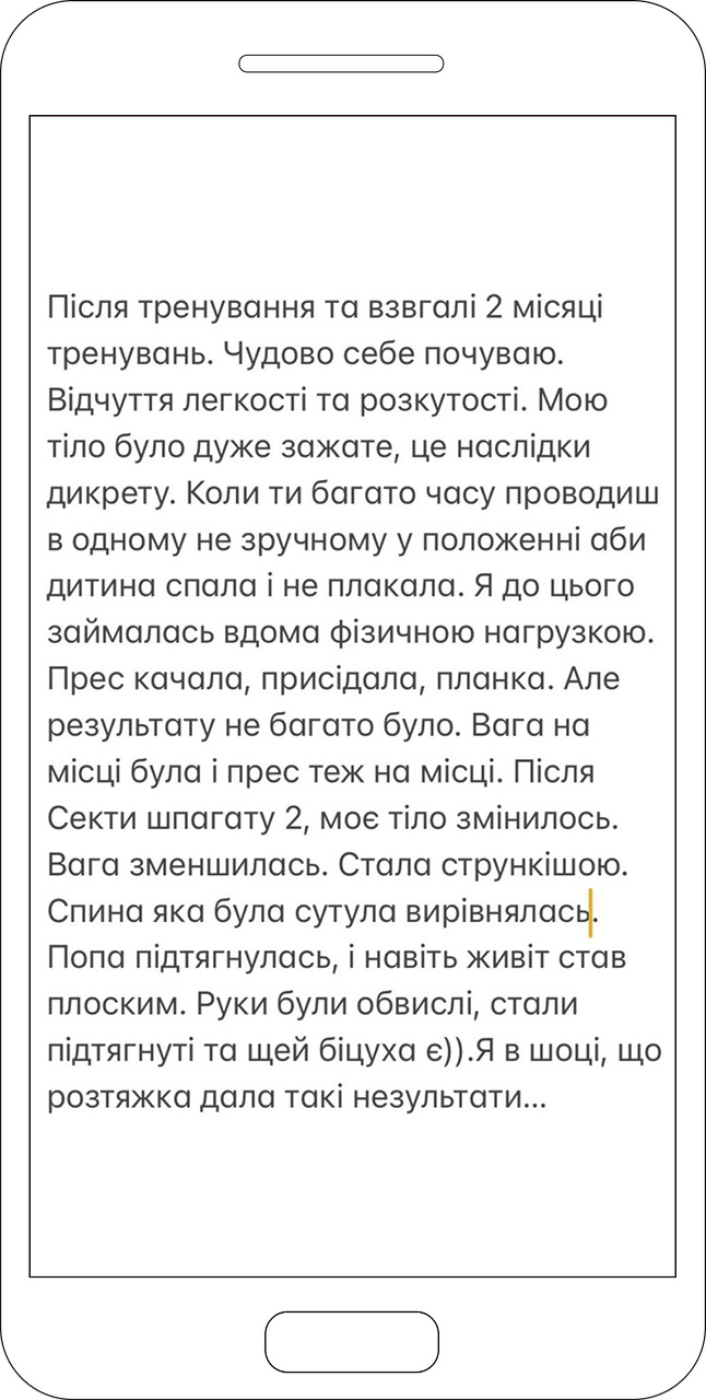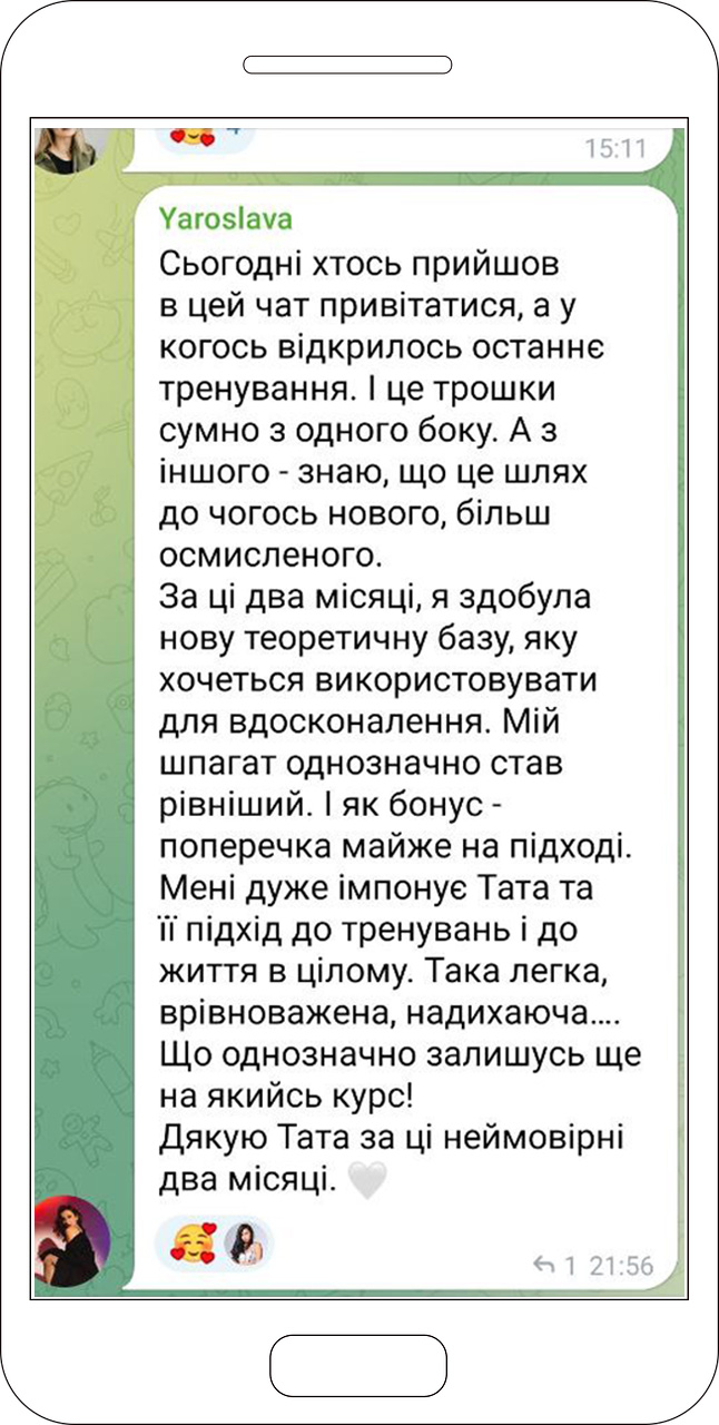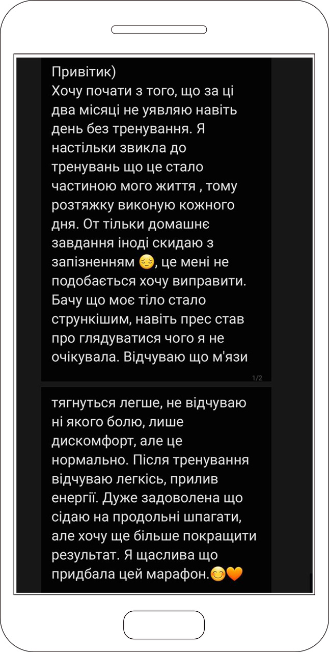 Чудово! Цей курс — ідеальне рішення для новачків та досвідчених учасниць. Усі вправи прості і не вимагають різкої розтяжки через нестерпний біль.