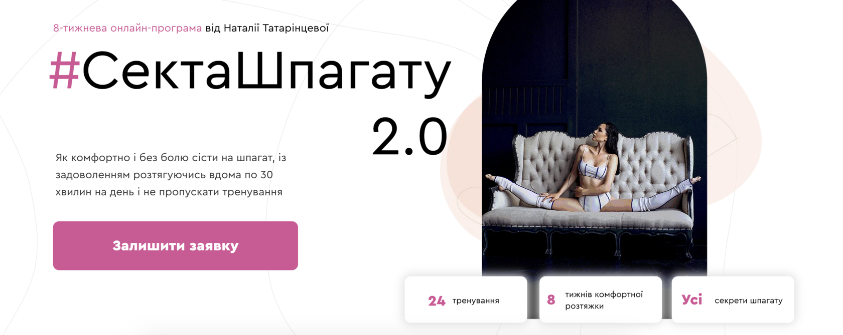 2-тижневий марафон, на якому ти безпечно та з задоволенням сядеш на різні види шпагату, приділяючи розтяжці по 30 хвилин на день